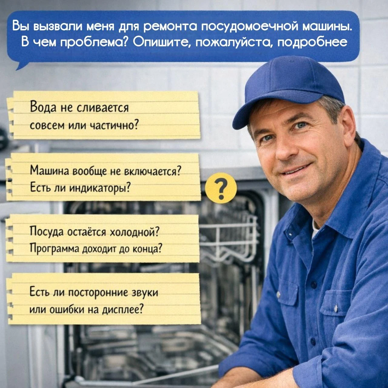 Работаю с моделями и марками всех производителей: Bosch, Siemens, Electrolux, Beko, Indesit, Whirlpool, Candy, Ariston, LG, Samsung и других. Благодаря опыту и современному оборудованию быстро определяю причину неисправности и оперативно устраняю поломку: машина не запускается, не нагревает воду, не засасывает или не сливает воду, остаются следы или запах, появляются ошибки на экране или течь. Преимущества работы со мной: • Срочный выезд на дом по Москве и области в удобное для вас время; • Бесплатная консультация и предварительная оценка стоимости; • Использование оригинальных запчастей и комплектующих; • Честные цены — без скрытых доплат и наценок; • Официальная гарантия на все виды работ. Провожу профессиональную диагностику и ремонт: замена помпы (насоса), нагревательного элемента (ТЭН), клапанов, фильтра, аквастопа, датчиков, платы управления, устранение протечек и засоров. Решаю как стандартные, так и нетипичные поломки, помогаю с установкой и подключением новой посудомойки, провожу профилактическое обслуживание для продления срока службы техники. Работаю без выходных — весь ремонт выполняется на дому, транспортировка в мастерскую не требуется. Чтобы заказать ремонт посудомоечной машины, оставьте заявку на сайте или позвоните по телефону. Предоставляю консультации онлайн, помогаю определить возможную причину неисправности и подобрать лучшее решение. Не рискуйте дорогой техникой — доверяйте ремонт только опытным профессионалам. Ваш мастер по ремонту посудомоечных машин в Москве и области всегда готов быстро и качественно решить любую проблему по разумной цене!